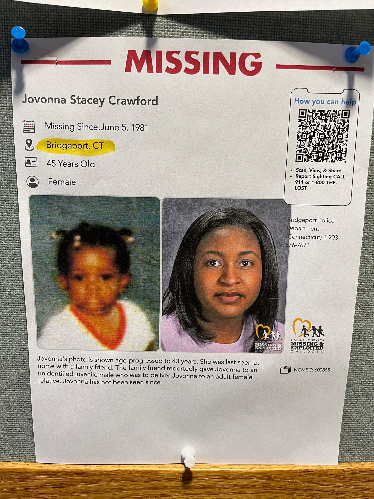 If Jovonna is still alive, she would be 45 years old today.